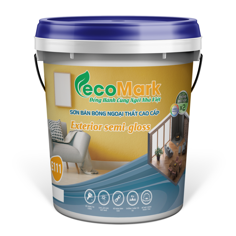 SƠN BÁN BÓNG NGOẠI THẤT CAO CẤP_E111 Là Sơn bán bóng ngoại thất cao cấp: Là loại sơn gốc nước có độ bóng ngọc trai và độ bền nhiệt siêu hạng, màng sơn dày, chống rêu mốc, co giãn tốt, chống thấm, lau chùi hiệu quả… Cho bề mặt bóng ngọc trai, màng sơn sang trọng.