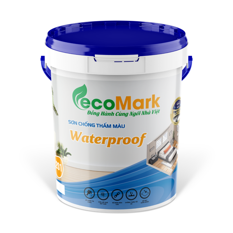 SƠN CHỐNG THẤM MÀU_E201 : Sơn Chống Thấm Màu là hệ sơn chống thấm gốc nước chuyên dùng cho tường đứng. Thành phần chống thấm gồm các hoạt chất Silicon và Polymer, kết hợp với bột thạch anh giúp tăng hiệu quả chống thấm lâu dài. Sản phẩm có khả năng co giãn, chống bám bụi, chịu nhiệt, kháng tia UV, kháng kiềm, chống nấm mốc và axit. Màu sắc đa dạng theo yêu cầu, phù hợp cho các công trình ngoại thất.