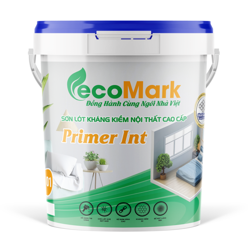 SƠN LÓT KHÁNG KIỀM NỘI THẤT CAO CẤP_E101:Sơn Lót Kháng Kiềm Nội Thất Cao Cấp Ecomark là loại sơn lót chuyên dụng dùng trước khi thi công các lớp sơn hoàn thiện trong nhà. Sản phẩm được nghiên cứu và thử nghiệm phù hợp với khí hậu Việt Nam, có khả năng thấm sâu nhờ cấu trúc hạt polymer siêu nhỏ, giúp tăng cường liên kết với bề mặt vật liệu, nâng cao độ bền cơ lý và khả năng kháng kiềm cho công trình nội thất.